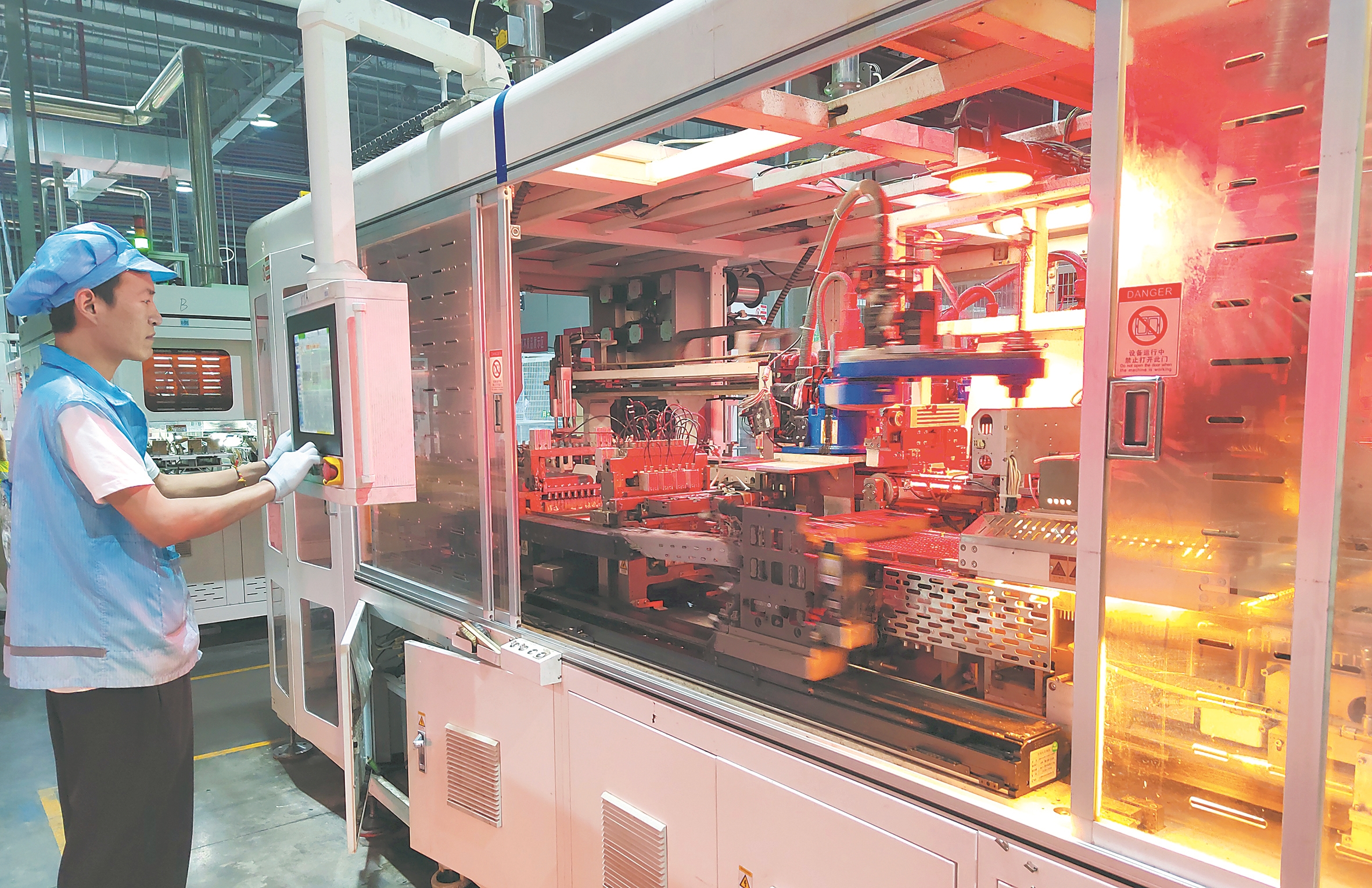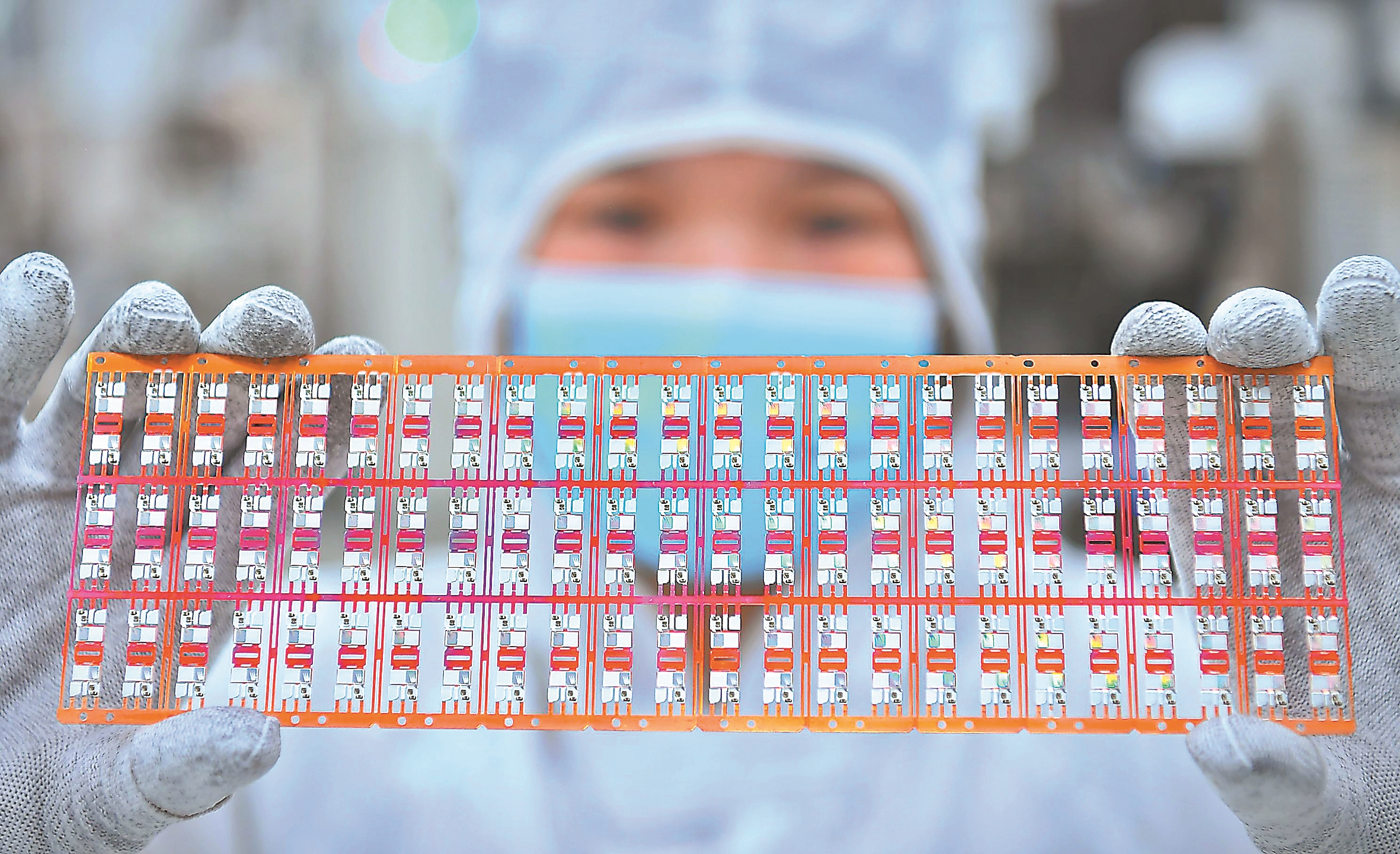 在蚌埠五河经济开发区,一道新能源(蚌埠)有限公司工人正在生产光伏产品。