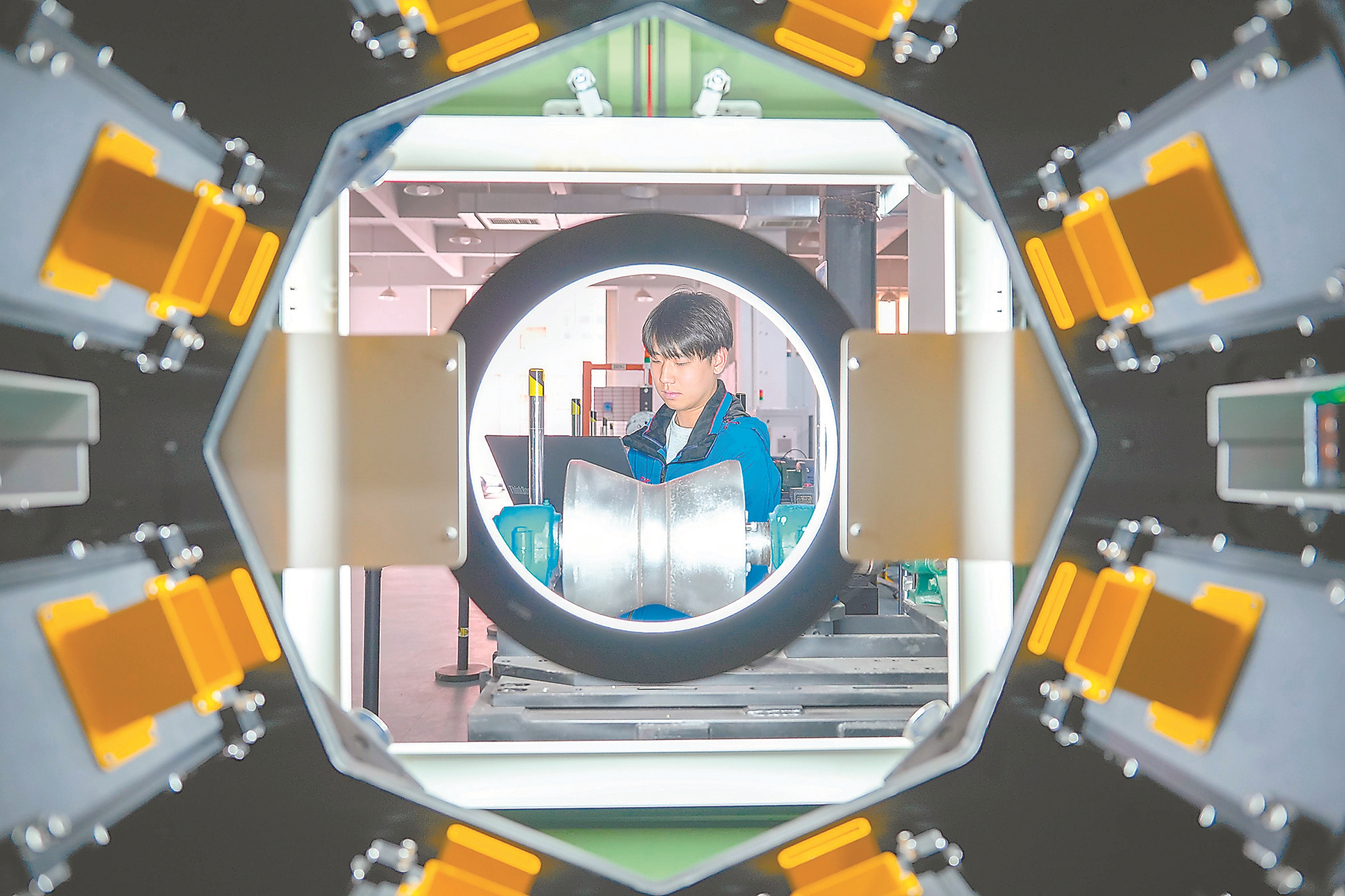 技术人员在中电博微合肥公共安全技术研究院对轧管及管加工智能检测设备进行调试。