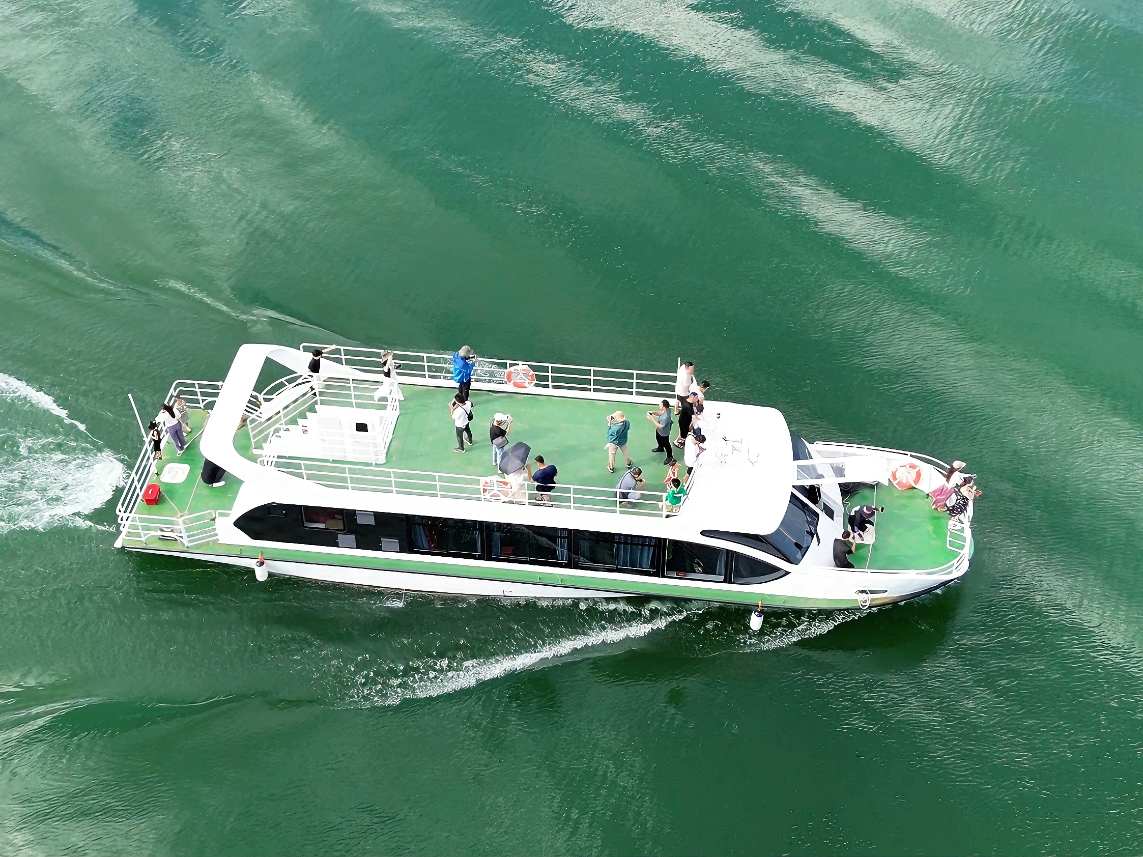 作为鄂东南的名牌景区,仙岛湖不断创新求变,为游客带来全新的旅游体验。在交通出行方面,积极推进游船升级改造。以往,游船由沿湖村民运营,管理混乱,且老式游船以柴油机为动力,油烟重、噪声大、座位空间狭窄。为改善这一状况,2018年7月,景区完成119艘游船整体收购,实行统一管理,并对船员进行培训。2024年,阳新县委、县政府支持仙岛湖风景区游船改造项目,40艘纯电池动力游船项目成功签约。升级后的游船均使用纯电动力系统,船内设空调,前后排座位间距宽敞,行船过程零排放、低噪声、无污染,还为每条船配备至少一名服务员,提供景点推介、安全保障等服务,大大提升了游客的乘船体验。