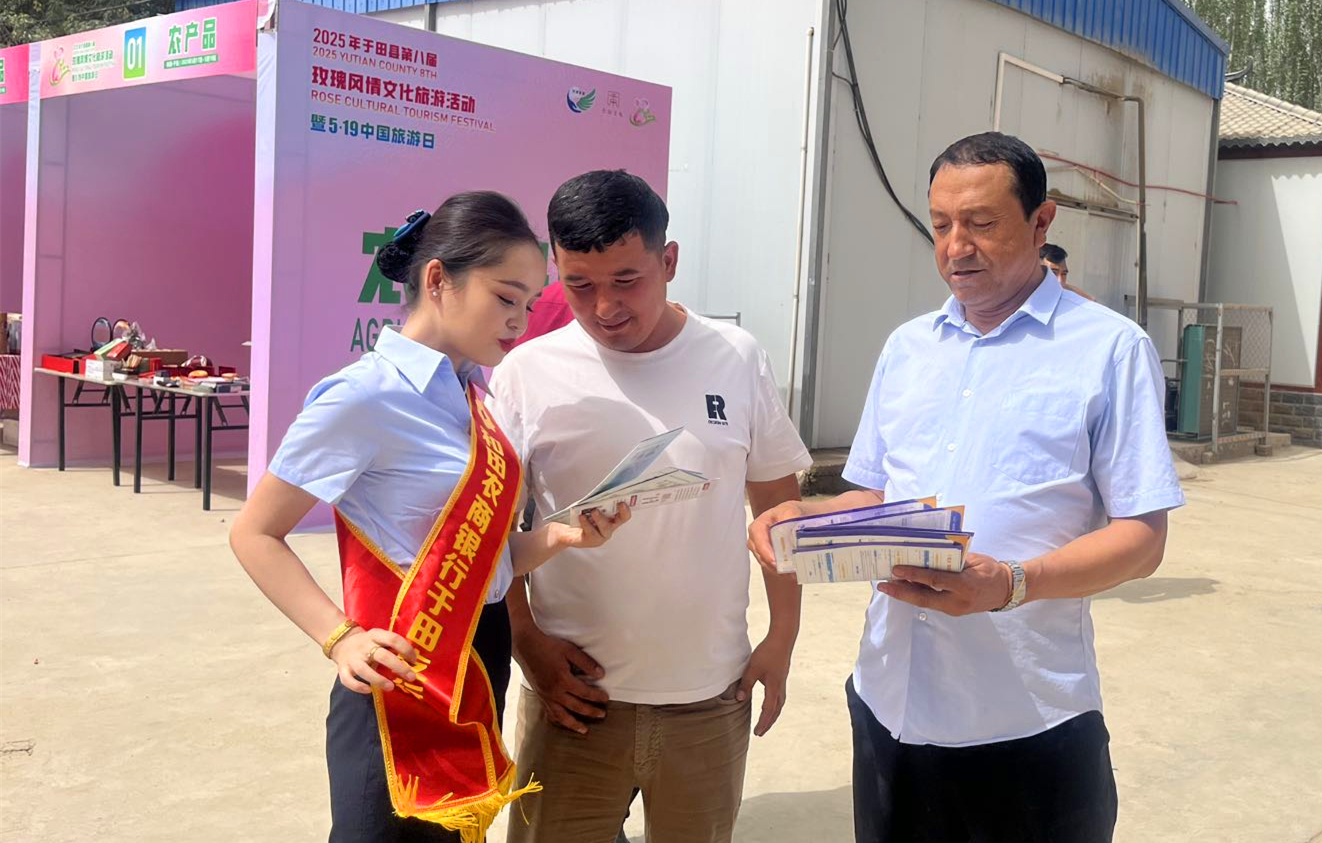 (图为于田支行工作人员在于田县第八届玫瑰风情旅游节上做宣传。买提尼亚孜·木萨摄)