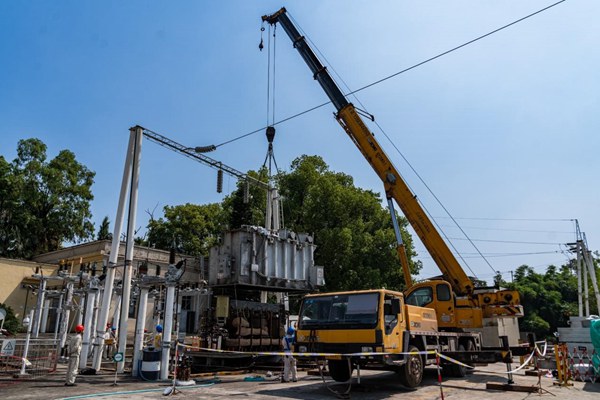 变电站主变吊罩作业。国网重庆永川供电公司供图