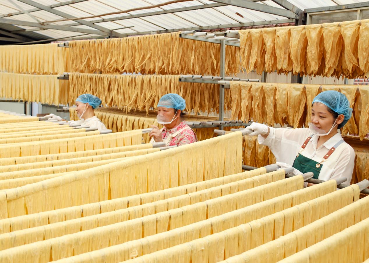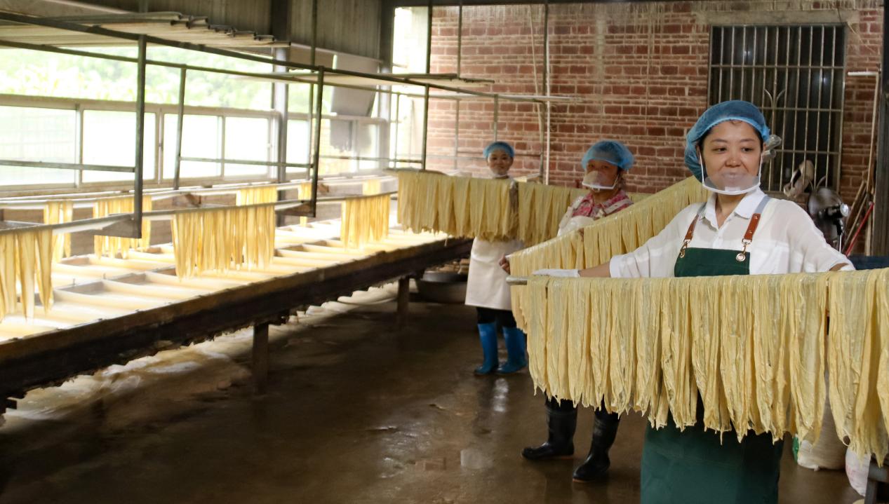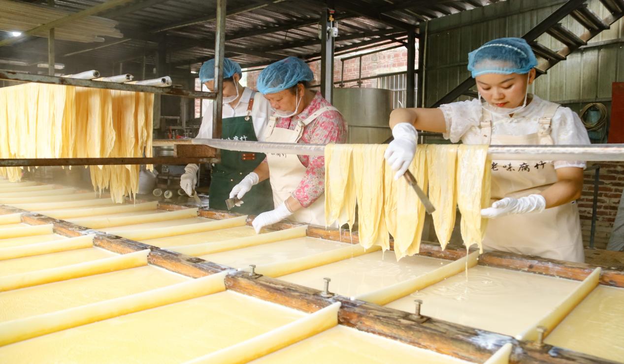 近年来,苍梧县依托本地资源优势,因地制宜,将腐竹产业传统工艺与现代技术集合起来,以党建为引领,通过乡村小作坊、扶贫车间、村集体经济、腐竹产业+的方式推进腐竹产业上下游产业链发展,增加就业机会,为群众增收,全面助力乡村振兴。(周火文 郭庆龙 文/图)