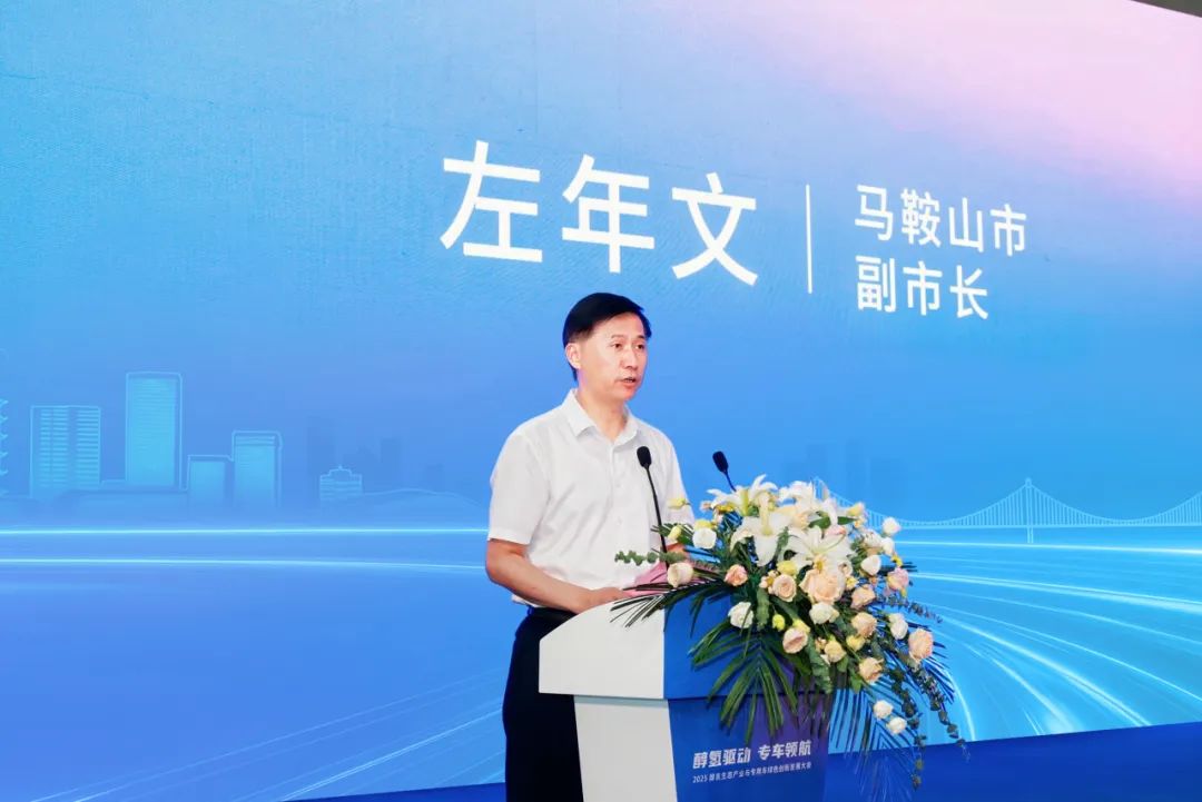马鞍山市副市长左年文、安徽省汽车办陈姝彤、远程新能源商用车集团CEO范现军、中国电动汽车百人会副秘书长师建华、远程新能源商用车集团副总裁端木晓露、副总裁郭磊、副总裁王彦彬等领导,以及安徽省各级相关部门负责人、行业专家,专用车、物流、航运、工程机械等相关行业大客户代表200多人参加此次会议。活动现场远程与合作伙伴达成200台新能源专用车、11艘10000吨级和5艘6500吨级醇氢船舶动力系统战略签约,共绘行业绿色转型新蓝图。