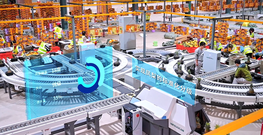 “菠萝哥”标准化生产线,实现凤梨的精准分级。