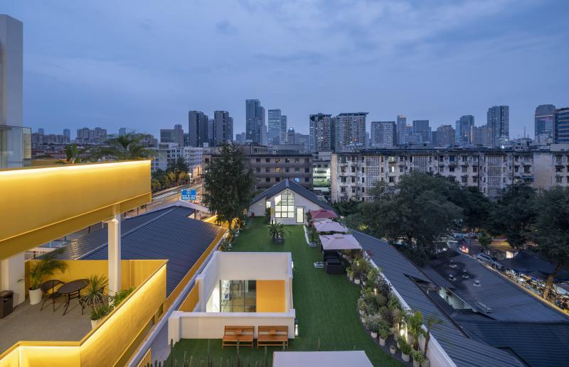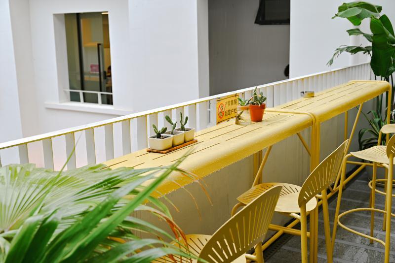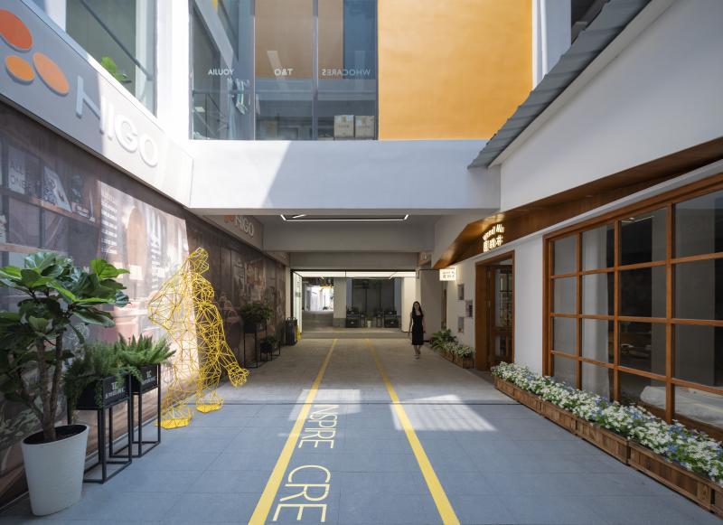 建筑中,一棵生长于天井中、高度超20米的银杏树,最为惹人注目。“这棵原本就扎根于此的银杏树,成为我们设计的灵感来源。我们在改造时,也使用了银杏黄作为主色调。”邹铜介绍,建筑还保留了两个天井,整个空间也因此变得更加明亮和通风。