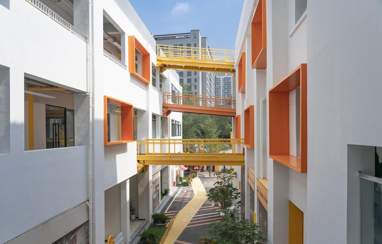 在远鸿同创汇,这样的设计理念处处可见。从外观上看,明朗的黄、稳重的蓝、干净的白、活泼的橙……多种鲜明色彩的碰撞,既保留了老灯具厂房的整体布局,也巧妙注入了当下的新潮流行元素,文艺又清新的设计,让“旧”和“新”融为一体,令人眼前一亮。