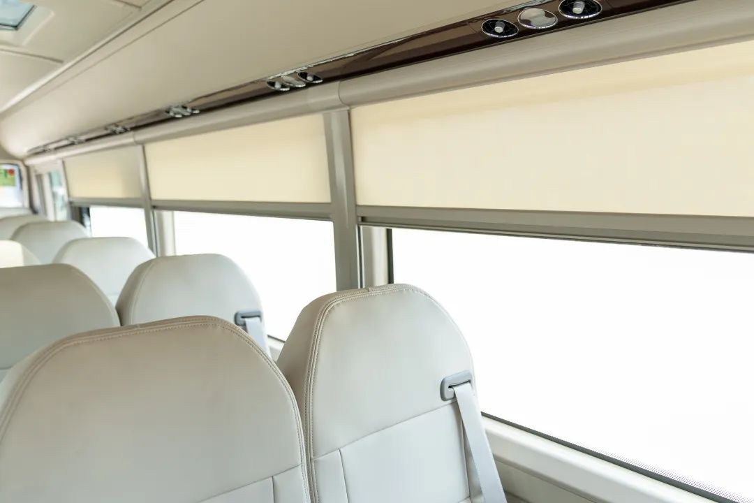 安凯N70Q以“轿车化”理念重塑高端出行体验,将中国智慧与舒适哲学融入每一处细节。米色主调点缀桃木纹饰,营造典雅氛围。NVH静音技术与前独立悬架系统协同过滤震动噪音,配合精心调校的低阻尼减震,行驶平稳如履云端。19寸高清电视、带除湿单冷空调、USB接口、阅读灯及独立出风口构建舒适生态。