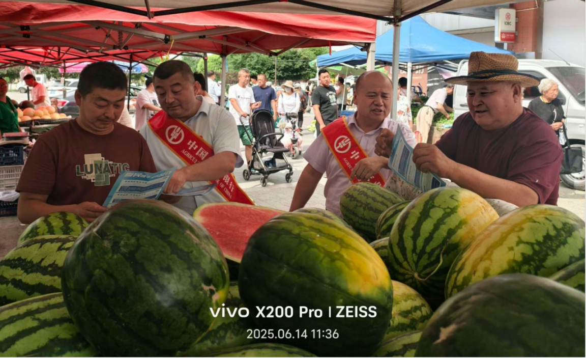 为进一步提升职工群众金融风险防范意识,普及金融知识,6月14日,农行可克达拉兵团分行紧扣"守住钱袋子,护好幸福家"主题,利用团场集市人员密集时段,组织开展了形式多样的金融知识宣传活动,将反假币、防电诈、存款保险等金融知识送到商户和居民身边。