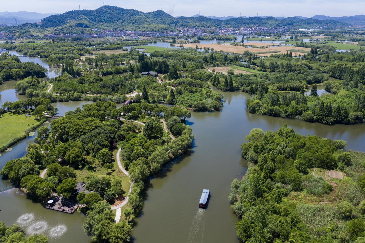 ▲电动游船行驶在浙江诸暨白塔湖国家湿地公园的水面上。6月27日,第七届全国县域旅游研究成果发布系列活动在诸暨举行。新华社记者徐昱摄