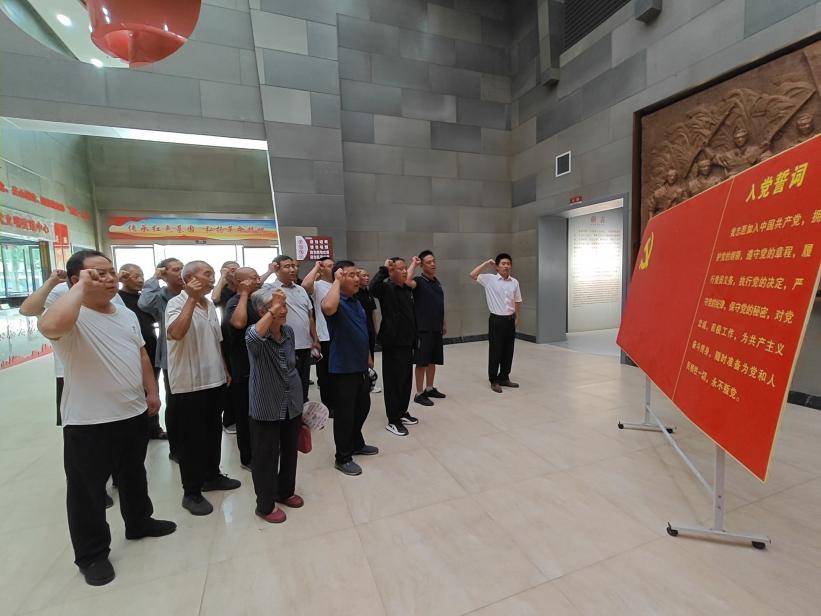 冀南革命纪念馆大厅内,驻村第一书记徐其剑同志带领全体党员重温入党誓词,再忆入党初心。