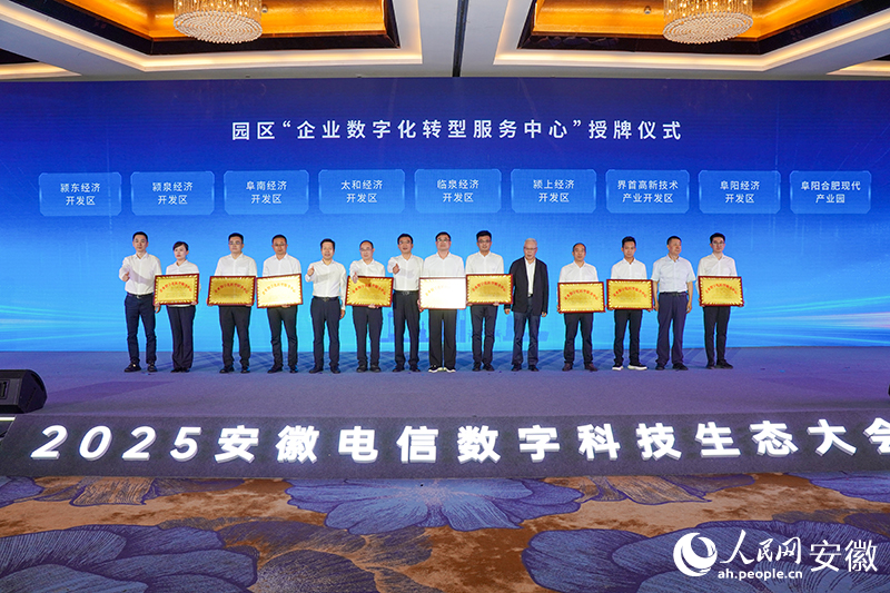 大会举行了安徽电信工业生态合作启航仪式,正式发布安徽电信工业生态“2+3+3”合作方案。中国电信阜阳分公司与9家重点产业园区管委会现场签订战略合作协议并进行了“数字化转型企业服务中心授牌”仪式。各方表示将以此次签约授牌为契机,整合资源、优势互补,共同打造安徽省产业园区数字化转型的标杆典范,携手构建阜阳数字生态共同体,开创数字化转型新局面。