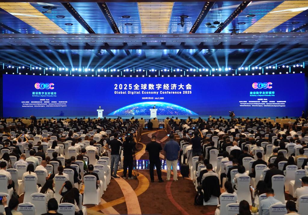 7月2日,2025全球数字经济大会在北京国家会议中心开幕。本届大会以“建设数字友好城市”为主题,呈现开放共享、聚焦前沿、产业融合、增强体验四大亮点。新华社记者 张晨霖 摄