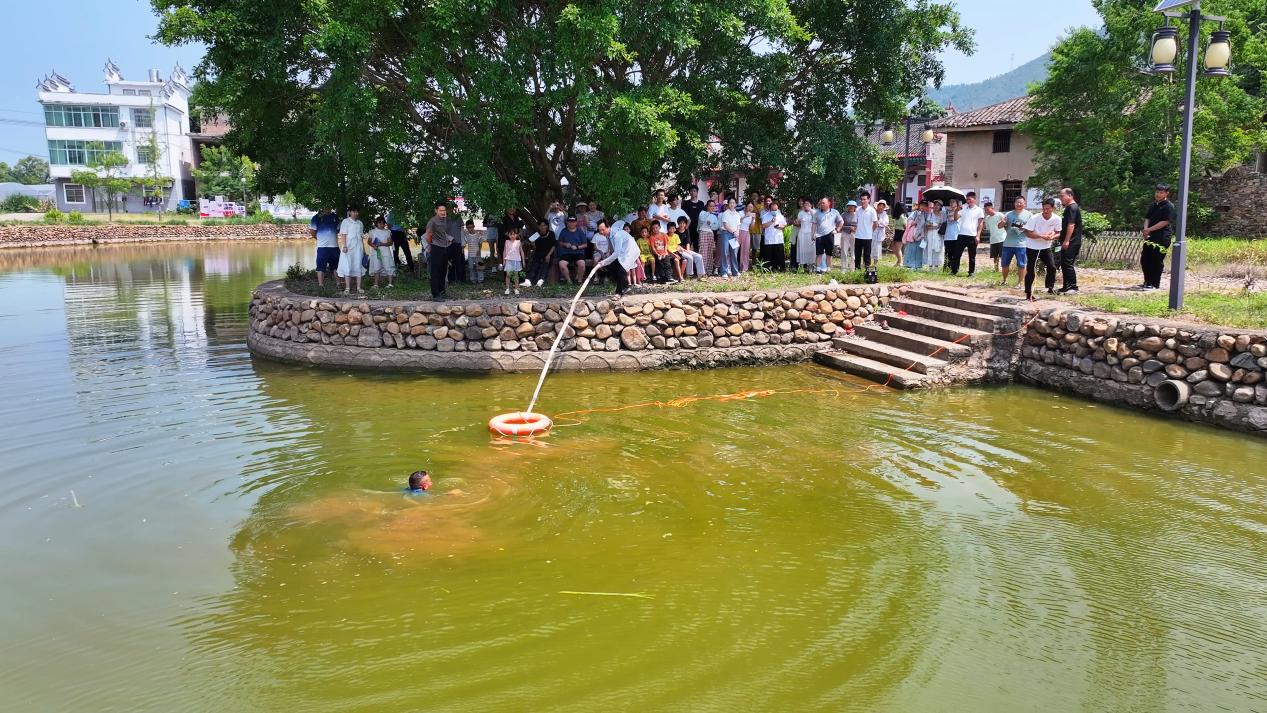 实战演练检验救援真章。“有人落水了!”在车溪乡卫生院甘立新院长指挥的模拟演练中,一场逼真的鱼塘溺水救援迅速展开。村民发现后立即利用岸边的救生圈进行精准抛投,医护人员火速抵达现场,评估、施救、转运环环相扣。演练不仅检验了预案可行性,更让旁观者直观感受了团队协作与规范操作在生死时速中的决定性作用。