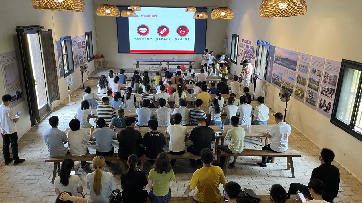应急救护赋能“黄金四分钟”。车溪乡卫生院钟毅的应急救护培训则赋予村民直面意外的勇气和能力。课程涵盖红十字精神、救护基本原则,并重点进行心肺复苏(CPR)与自动体外除颤器(AED)的操作实训。从环境评估、呼救、胸外按压到人工呼吸,每个环节都力求标准。针对常见的气道异物梗阻,钟毅现场演示了“海姆立克急救法”的要领,让抽象的急救知识转化为可操作的救生技能。