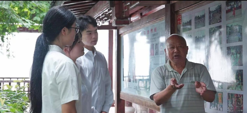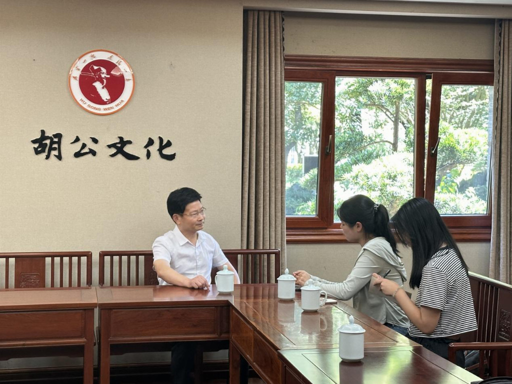 胡则后人向实践团成员讲述先祖胡则清廉为官往事