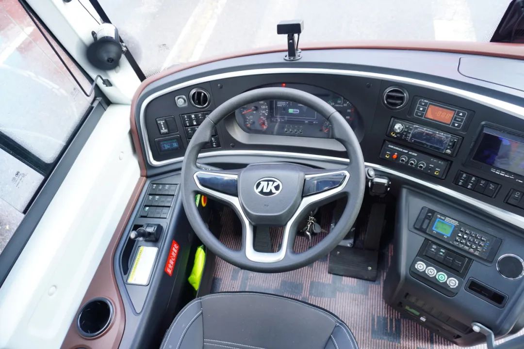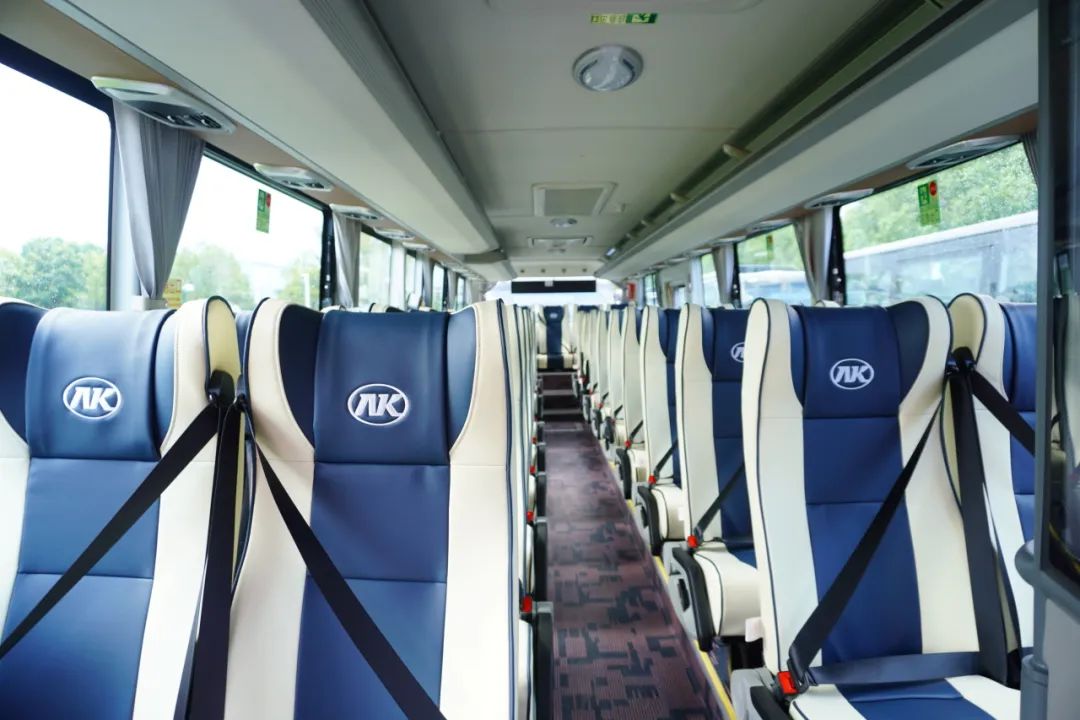 为保障高铁接驳安全无忧,车辆采用轿车化仪表台与全液晶仪表盘设计,信息清晰直观,操控便捷流畅,极大提升驾驶员的舒适度与专注力。同时,安凯N11E充分考虑乘客需求,拥有5.5m³的贯通式行李舱,并贴心增设大容量行李架,有效解决了游客行李存放难题。