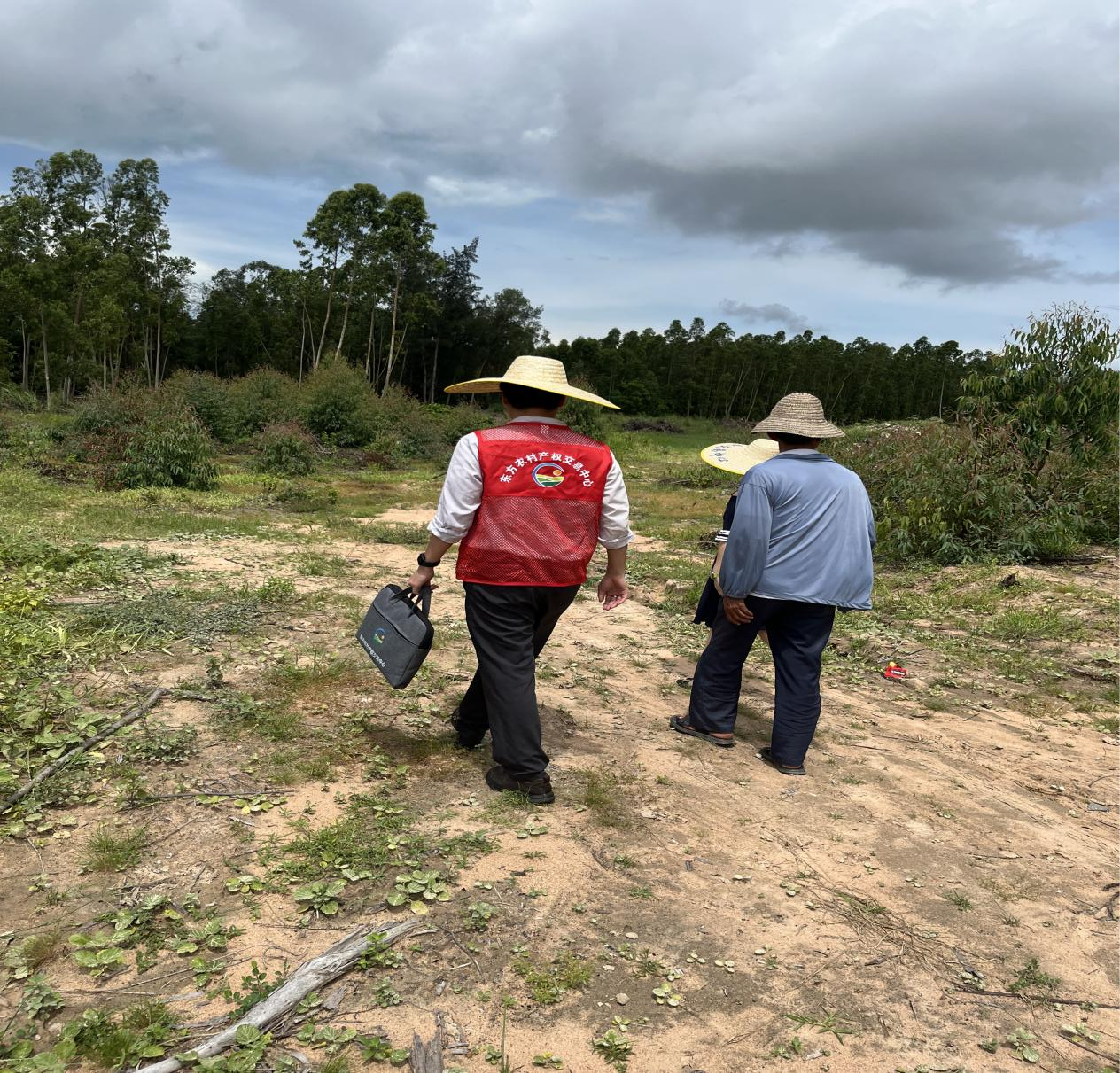 东方市林业服务中心、东方农村产权交易中心到集体林地实地勘察。