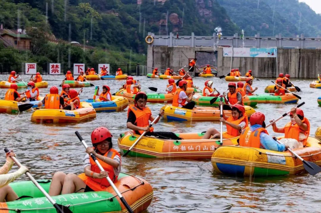 换上装备,坐上漂流艇,顺流而下穿过奇石险滩。水花溅起的瞬间,尖叫声与笑声划破山谷。这趟融合了探险刺激与山水画卷的漂流旅程,堪称解锁河南仙门山夏日的“最强避暑神器”,助你满血迎接傍晚的激情。