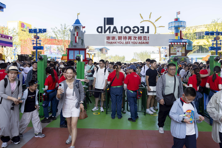 7月5日,游客从上海乐高乐园门口入园。