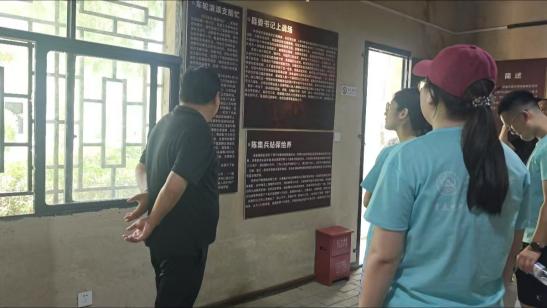 图为实践队员倾听讲解员诉说红色故事。周冉摄
