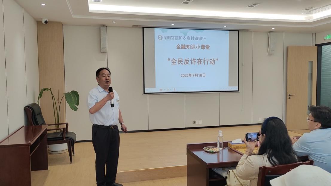 金融安全课堂“护民安”。昆明官渡沪农商村镇银行大堂经理周刚以“全民反诈在行动”为主题,通过真实案例剖析,深入浅出地讲解了“屏幕共享”“教你关闭抖音会员”等最新电信网络诈骗的常见套路及防范技巧,并现场发放反诈宣传手册100份,帮助居民筑牢金融安全防线。