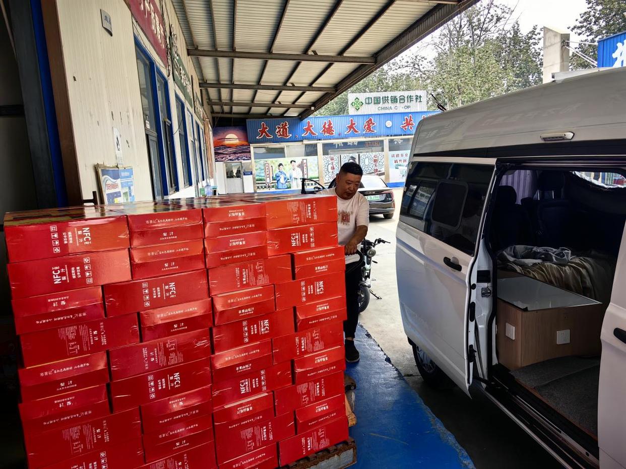 图为寒暑记果汁从北京顺丰云仓发往各地。