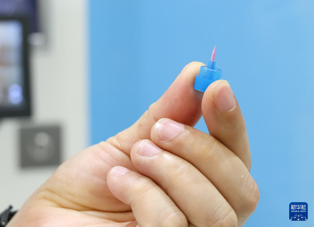 在三环集团潮州厂区,工作人员展示IC封装陶瓷劈刀(5月28日摄)。新华社记者 毛思倩 摄
