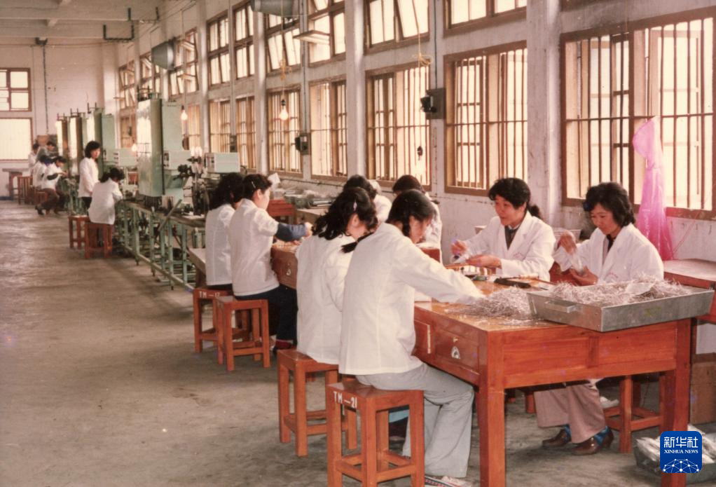 20世纪90年代,三环厂区车间内电阻编带和包装场景(资料照片)。新华社发