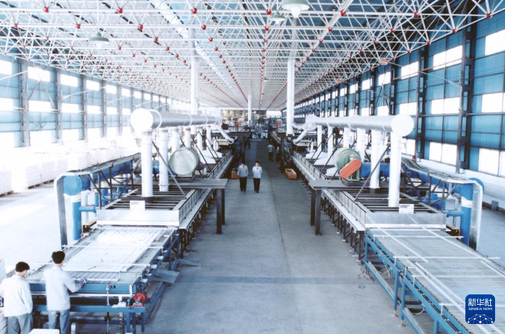 20世纪90年代三环公司瓷砖生产现场(资料照片)。新华社发