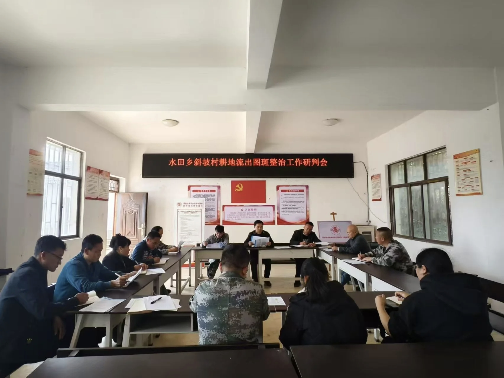 2024年,斜坡村紧跟上级党委政府的安排部署,坚决推进耕地流出图斑整改工作。针对斜坡村委会牛屎坡片区40余亩连片图斑,工作组反复入户宣传动员整改,因该片区土地放荒多年,需投入的财力和人力成本大,农户无力自行开展整改。村党总支、村委会开展分析研判,决定由村党总支统筹领导,村委会联动村小组将连片土地整合,集中开展整改,并积极与糖厂协调种苗、肥料等事宜,发展甘蔗种植。