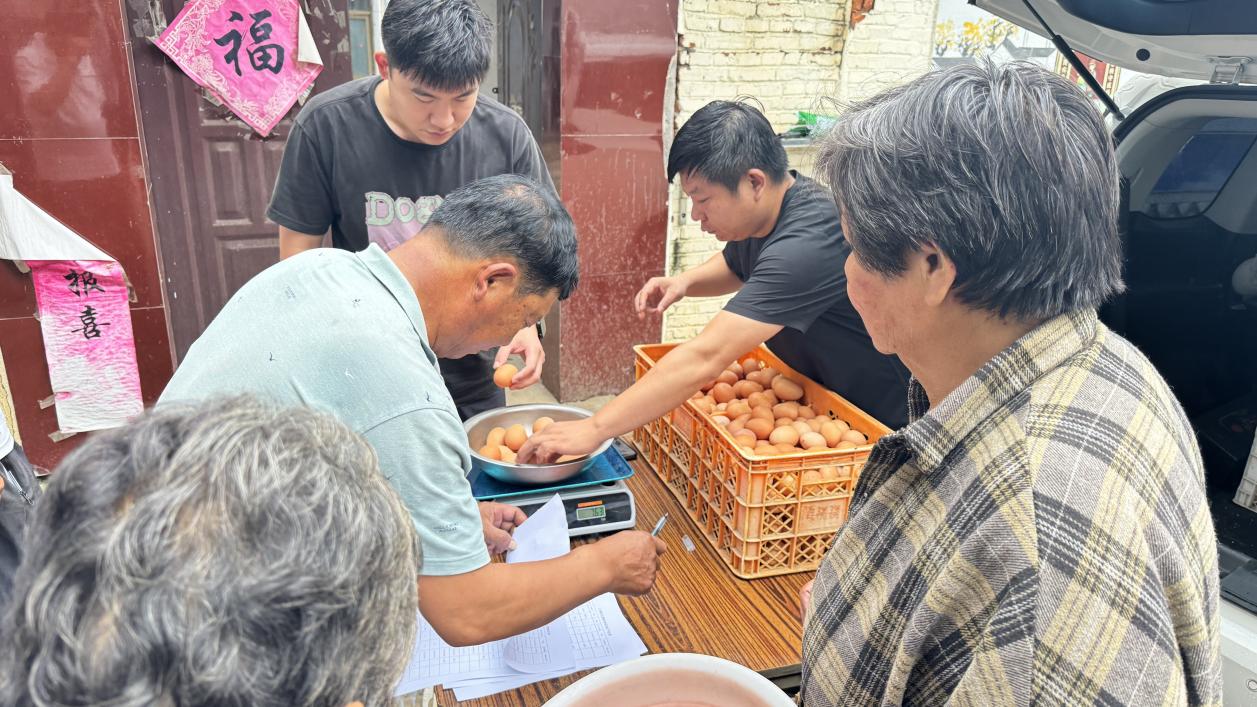 产业发展欣欣向荣,村民分红喜笑颜开。近日,河北省第七人民医院驻阜平县夏庄乡羊道村工作队为村民分红鸡蛋现场一派繁忙景象。