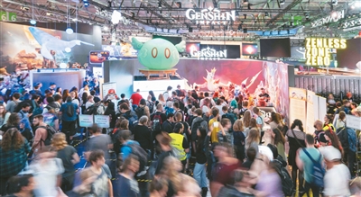 图为2024年德国科隆国际游戏展中的米哈游《原神》展台。