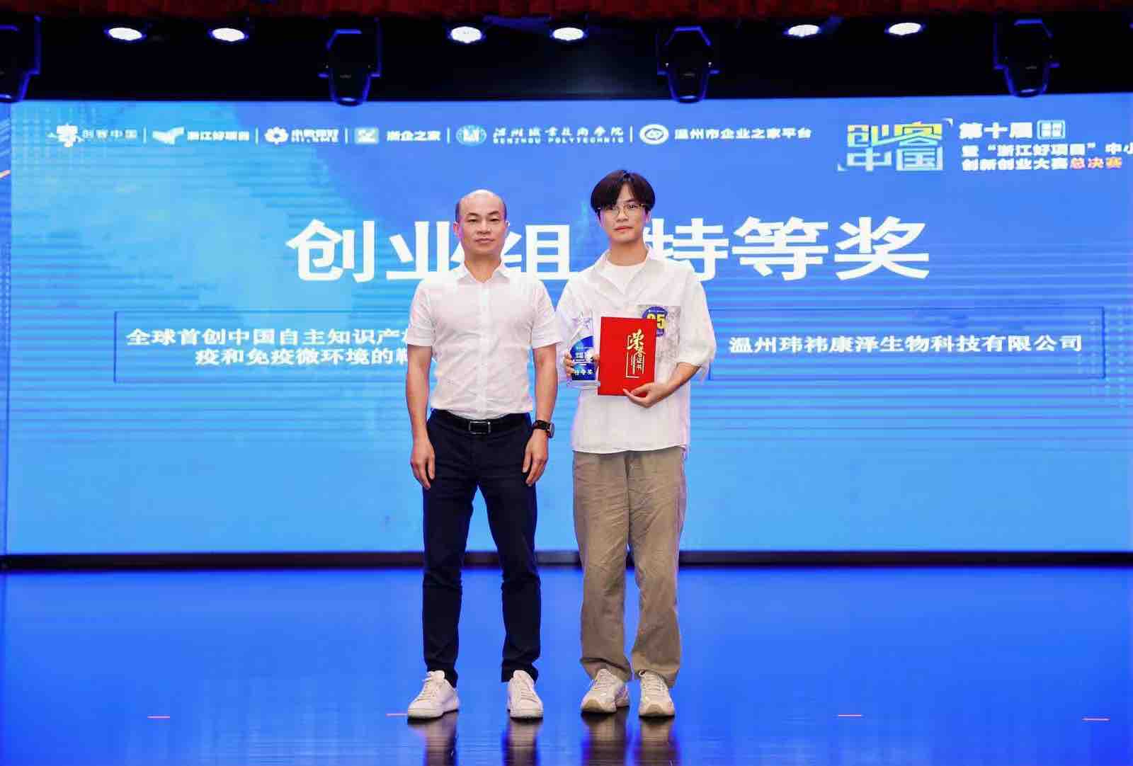 特别是,创业组中,温州玮祎康泽生物科技有限公司的基于全新靶点的全球首创抗肿瘤创新药项目获得特等奖。该项目已经通过多类动物试验,目前显示可以通过免疫调控作用显著抑制肿瘤,对多种部位肿瘤具有疗效。