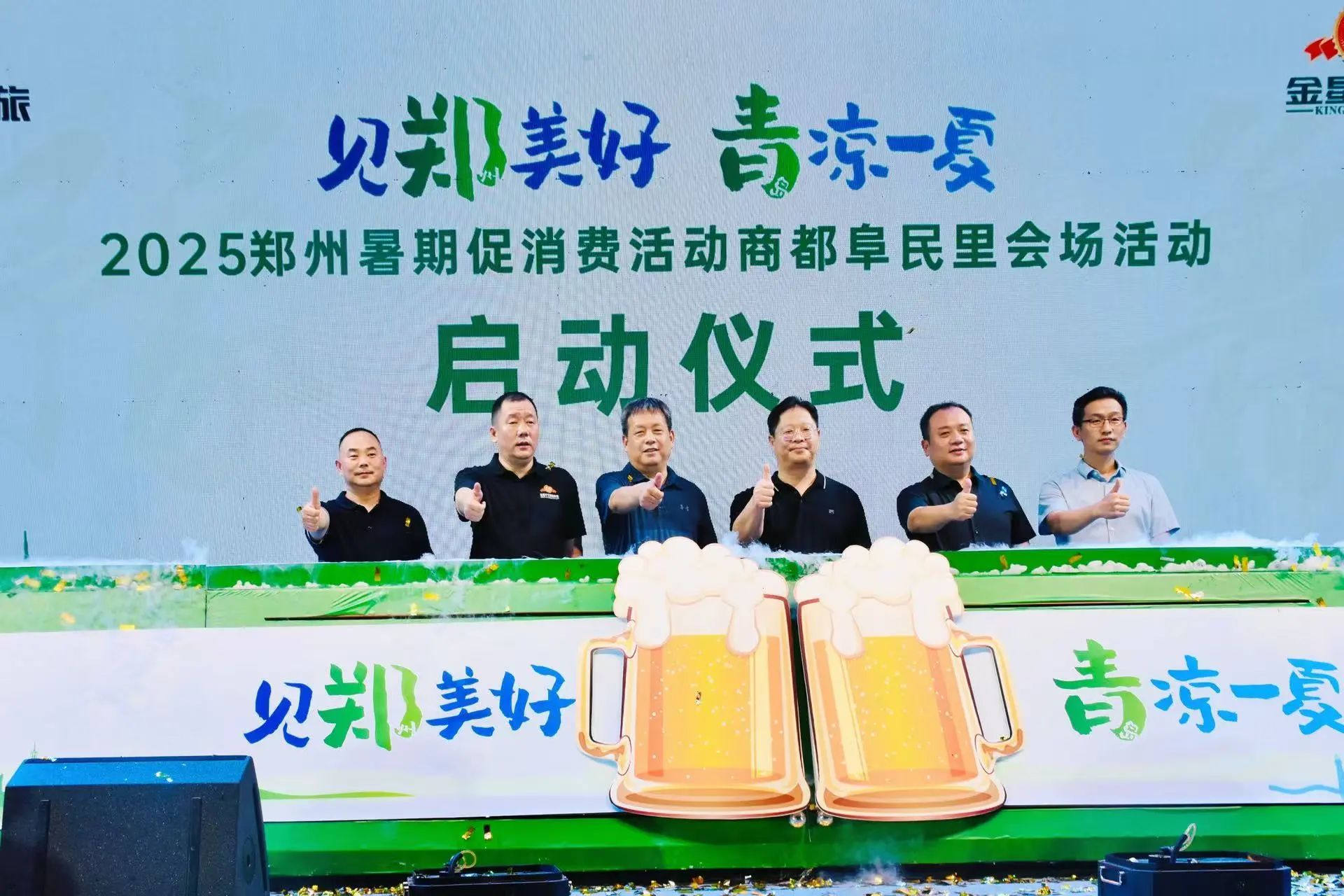 7月26日20时,华灯初上,郑州的夜空被一场盛大的夏日狂欢点亮。“见郑美好·青凉一夏”——2025郑州暑期促消费活动启动仪式在郑州管城区阜民里、郑州金融岛、郑州绿博园等地同步举行。金星啤酒集团副董事长张峰、营销中心总经理吕晓朋出席郑州阜民里会场,与管城回族区人民政府区长丁晓永,郑州市文化广电和旅游局副局长刘海青,商务局副局长晁俊涛,管城回族区委副书记、政法委书记孙涵,建中集团董事长谷合群等相关单位领导及现场数万人共同见证郑州啤酒节盛大开幕。