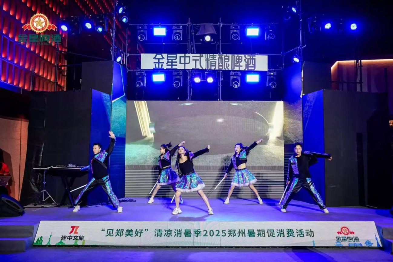 活动以充满夏日气息的先导片《见“郑”美好,“青”凉一夏》开场,瞬间点燃了现场观众的热情。启动仪式上,吕晓朋回顾了金星啤酒一路走来的经历:“金星啤酒根植于郑州管城区,历经43年发展不断提升技术实力,在产品创新、传播、渠道上不断突破,坚持为国人酿好酒,做中式精酿开创引领者。”推介结束后,超燃乐队激情开唱,声浪几乎掀翻屋顶;赛博舞团用机械肢体重塑律动,整座城市在这一刻化身成了赛博朋克Live现场,灯光、音乐、人群交织在一起,嗨翻了这个夏夜。