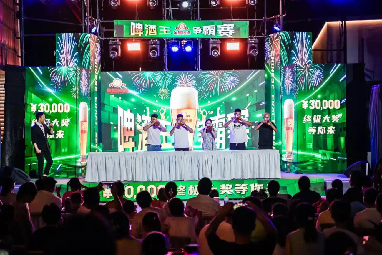 随后金星啤酒王争霸赛更是将气氛推向了白热化。选手们蓄势待发,随着一声令下,他们如离弦之箭般开始畅饮金星中式精酿啤酒,当台上选手以优异成绩勇夺当日冠军时,现场爆发出雷鸣般的掌声和欢呼声。阜民里擂台纪录屡破,豪饮英雄们狂揽整箱精酿,全民挑战零门槛,入场即赠6罐金星中式精酿,日冠军还能直通总决赛争夺3万元现金王座,这诱人的奖励让现场观众热血沸腾。