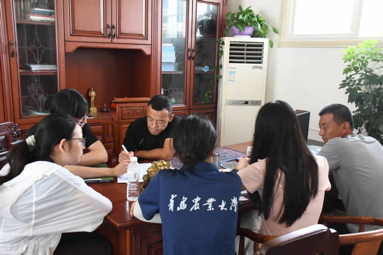 在莱西市,团队先后走进姜山镇兴隆屯村、从家寄马埠村等3个村庄,以及青岛万好千村农业发展有限公司、宏伟海波农机专业合作社等3家农业经营主体,通过问卷、访谈、实地观察等方式,重点收集了数字技术在粮食种植、农机托管等领域的应用情况。莱西夏格庄镇万好千村农业发展有限公司负责人李娜对调研团队的到来表示热烈欢迎:“看到这么多年轻学子关注乡村农业发展,我们特别欣慰,也感谢中国农业科学院的专业指导。”目前,该公司设种植基地10000余亩,土地成方连片,全程95%以上实现机械化,在高效种植、精准管理上成效显著。企业负责人指出,目前智能设备维护、数字化平台运营等环节都急需专业力量支撑,真心希望更多大学生和技术人才扎根田间,让智慧农业做得更实、走得更远。