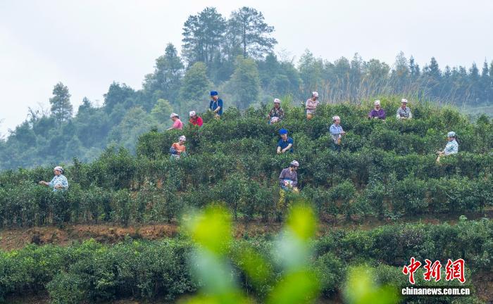 2024年3月18日,茶农在广西梧州市苍梧县六堡镇沁怡六堡茶业专业合作社茶园采摘茶叶。