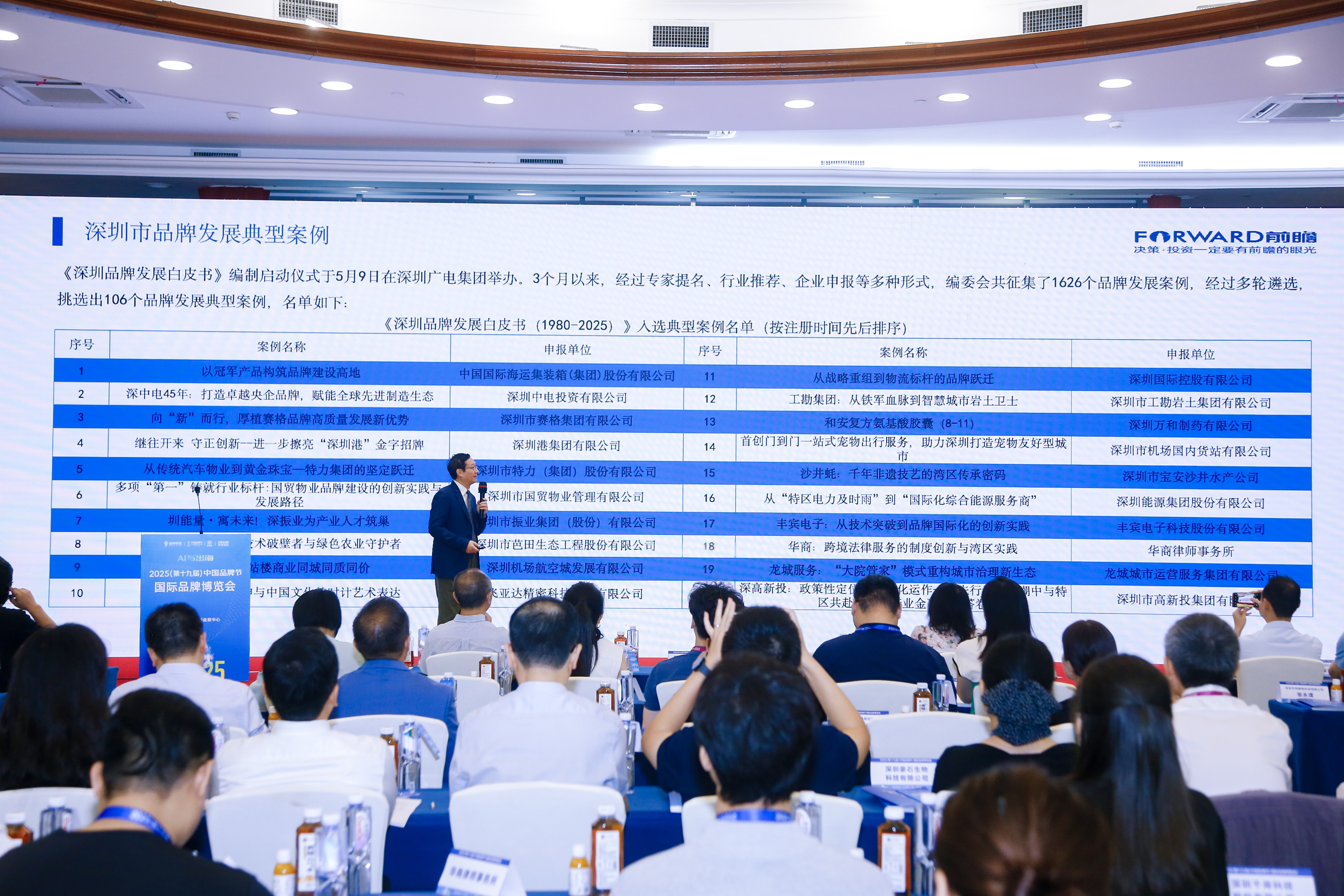 值此深圳经济特区建立45周年之际,由前瞻产业研究院领衔编撰的《深圳品牌发展白皮书(1980-2025)》在开幕式上成为焦点。徐文强详细解读了白皮书的编制思路与核心内容。该书系统梳理了深圳品牌从“三来一补”起步,到如今众多企业品牌国际化走在前列的辉煌历程。围绕“深圳45周年,我们的品牌”主题,编委会从1626个征集案例中,经严格遴选,甄选出一批具有代表性的品牌发展典型案例、品牌功勋人物、新锐品牌人物、卓越品牌、产业创新品牌、成长型品牌。开幕式现场举行了发布仪式,中集集团等106个入选首批品牌发展典型案例,同时表彰了一批品牌功勋人物和新锐品牌人物。这部凝结特区45载品牌奋斗史诗的里程碑之作,预计于2025年10月正式出版发行。