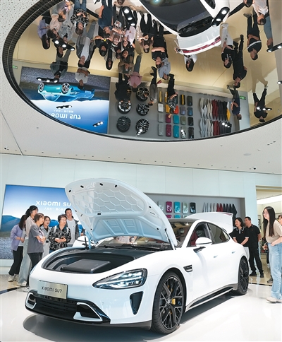 参观者在北京小米汽车工厂的体验中心了解SU7汽车。新华社记者郑焕松摄