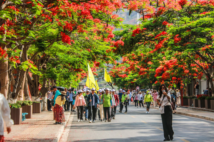 今年5月,凤凰花盛放,大量游客来到云南省易门县绿汁镇游玩。