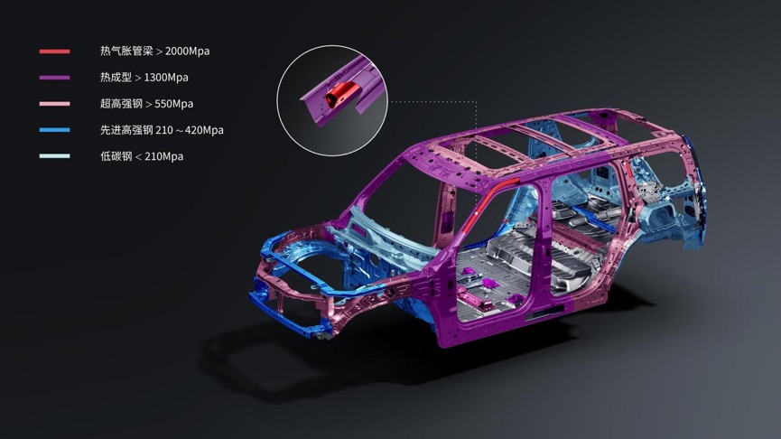 极限环境下,猛士M817安全配置全程守护,智能红外夜视系统可在120米内识别车辆、行人、动物,浓雾、风沙等恶劣天气也能看清前路;全场景主动安全带、1700mm超长安全气帘,让安全感倍增;宁德时代越野专用电池采用10层结构防护,全方位抵御越野时的磕碰冲击。同时战甲车身采用超高强度笼式安全结构、1920mm内高压一体成型纵梁,再加上结构总长度达12.48米的2000MPa热成型钢、占比达83.2%的高强度钢、全车顶压安全设计等,用车身上下左右的无死角防护,构筑起“金钟罩”般的安全座舱。