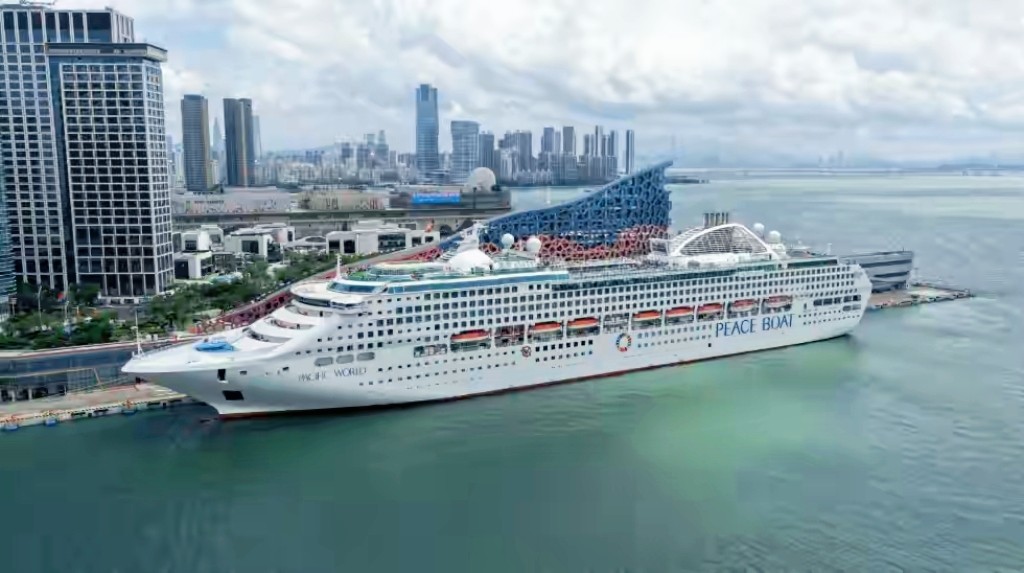 8月24日,和平之船“太平洋世界”号环球邮轮靠泊深圳国际邮轮母港,近500名来自日本、韩国、美国、西班牙、马来西亚等国家的国际游客专程到访深圳前海石公园、欢乐港湾、宋少帝陵、赤湾天后博物馆等前海热门景点,另有部分游客登上湾区游轮,感受前海作为“世界级滨海旅游目的地”的非凡魅力。