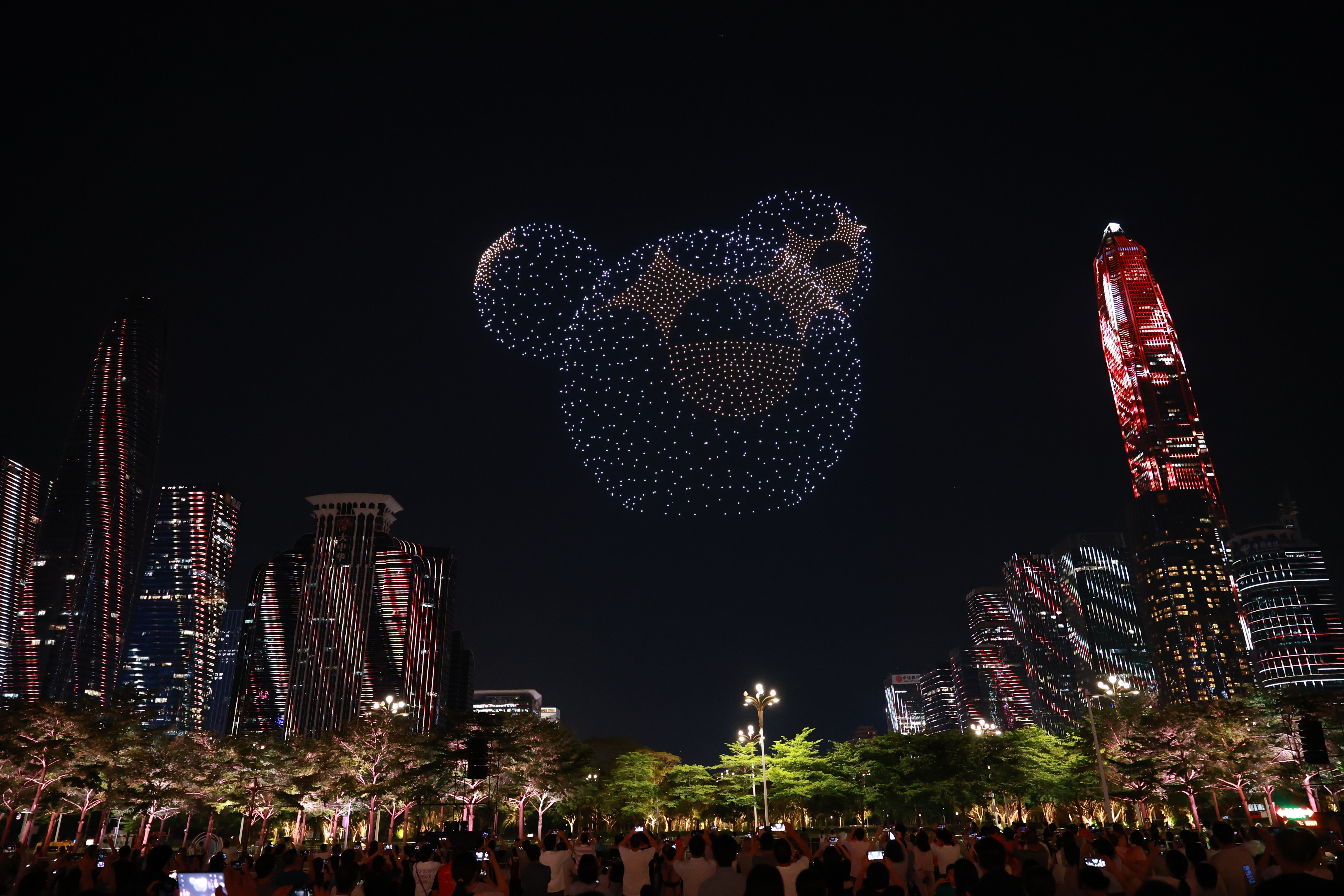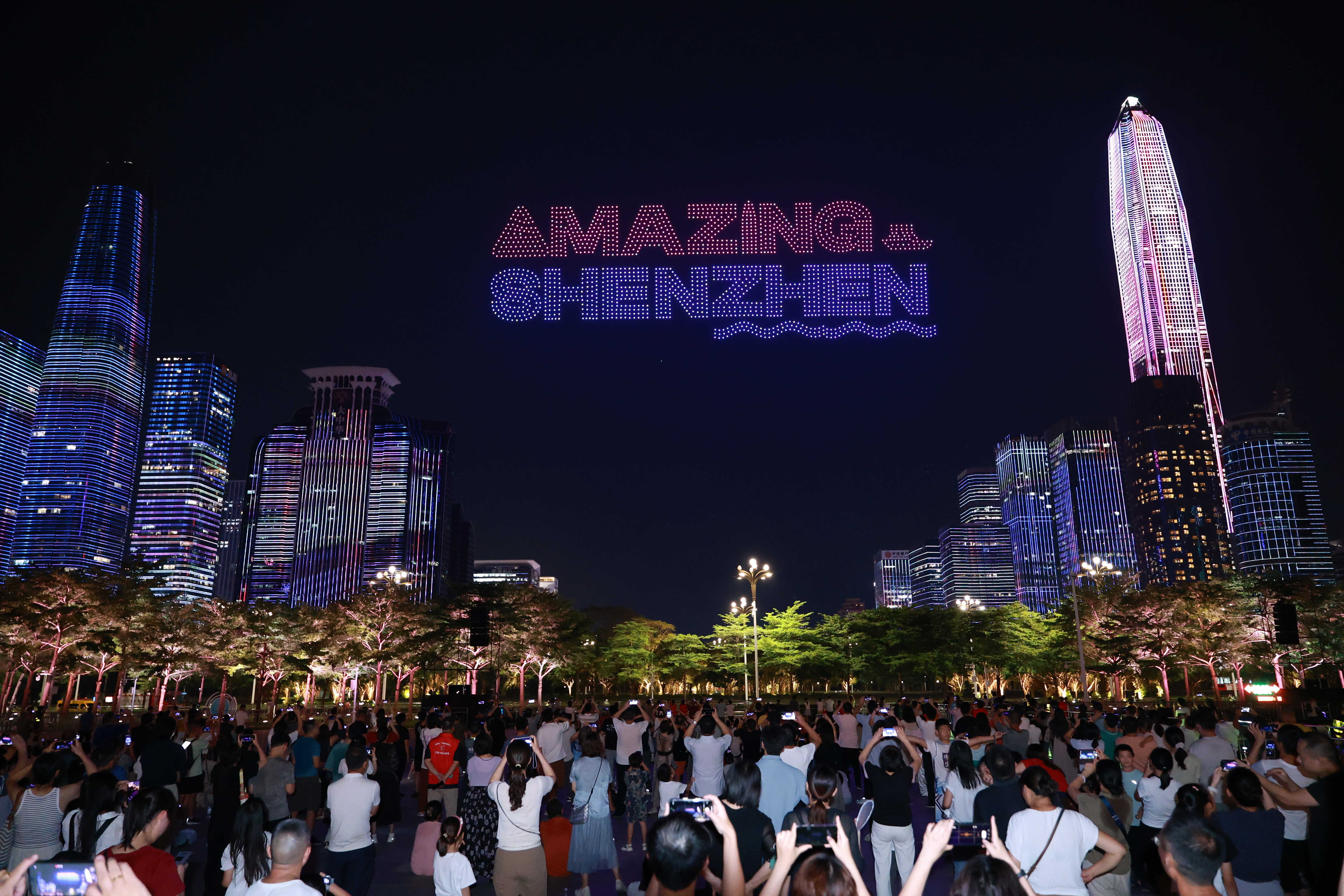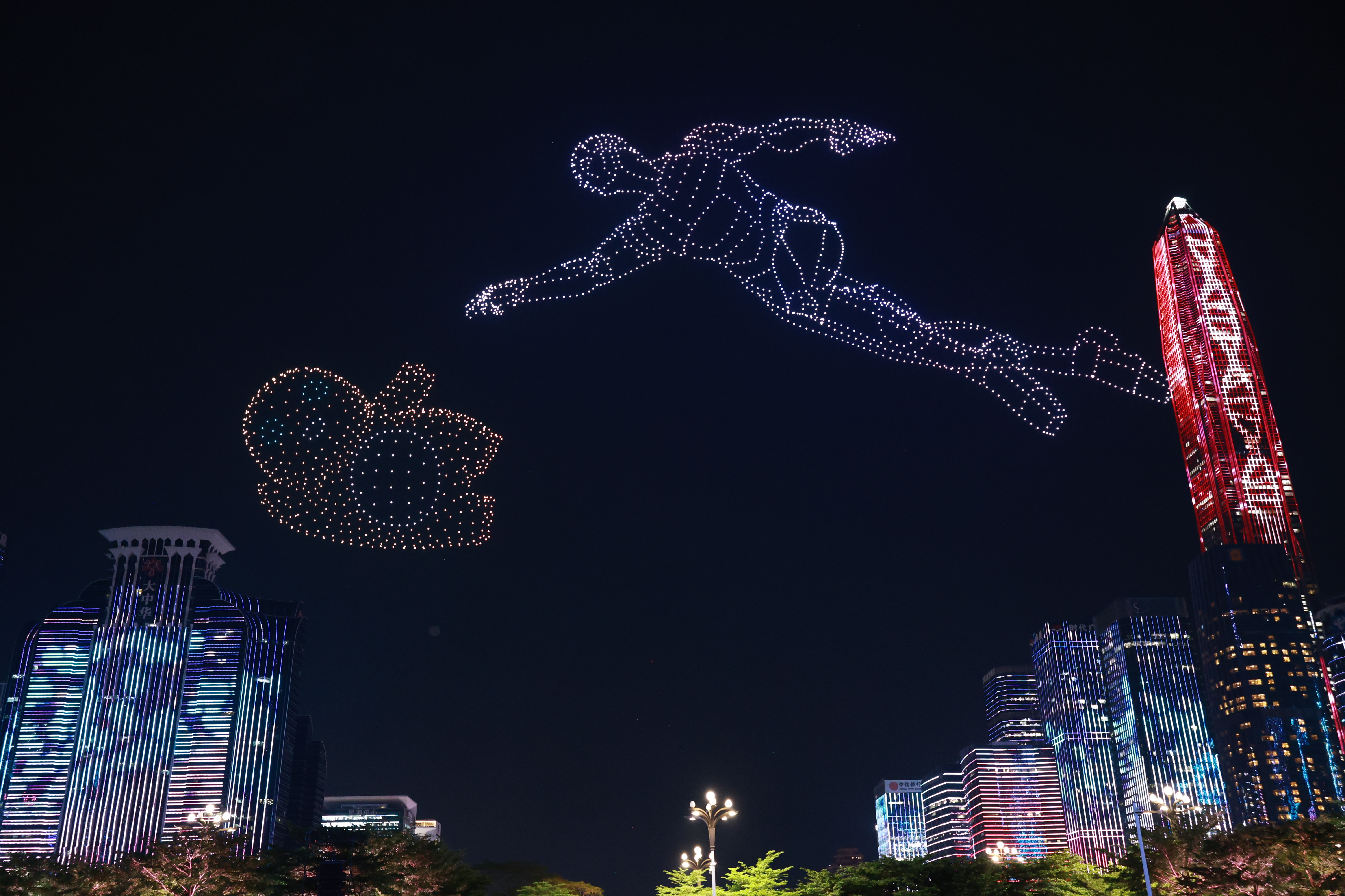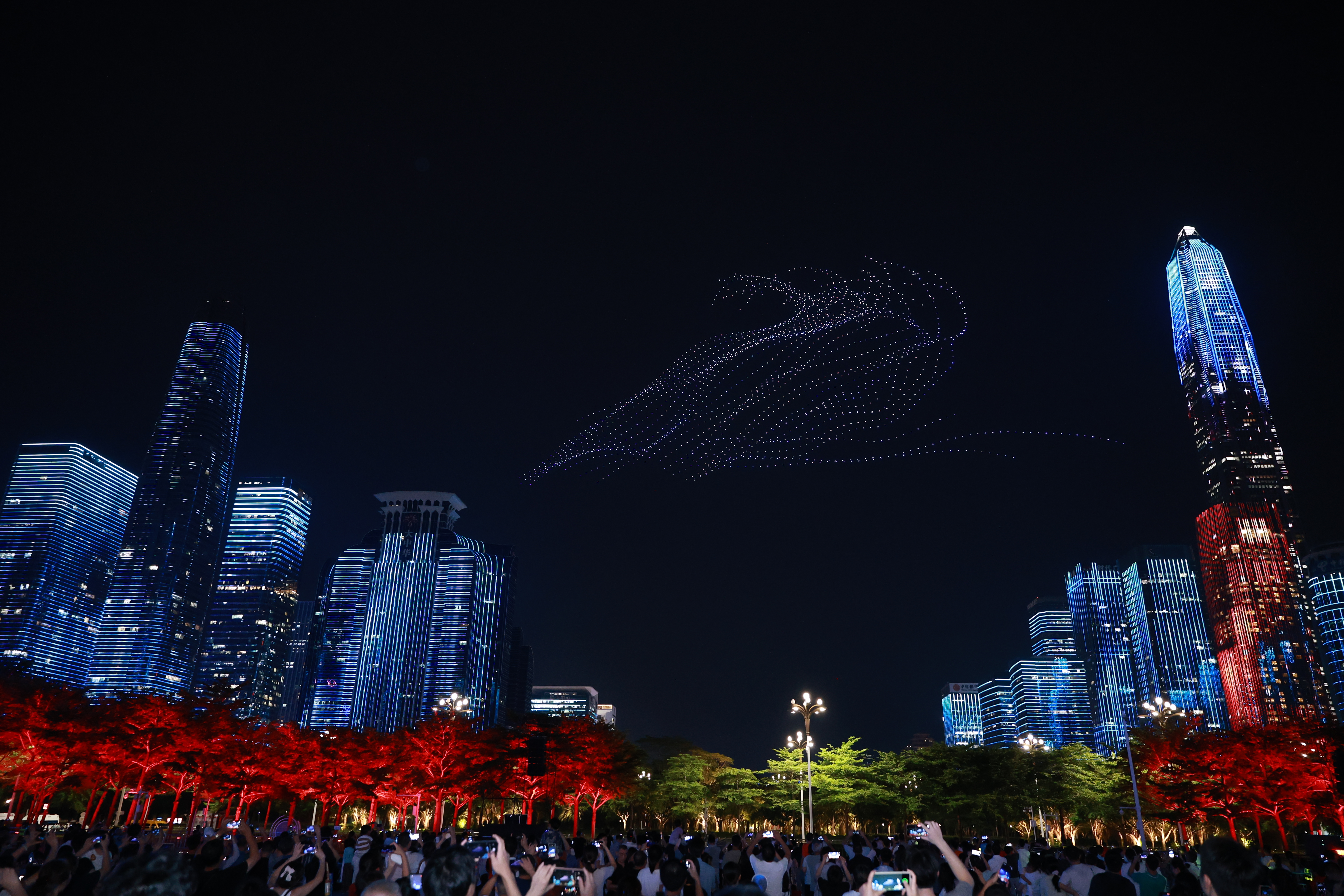 8月26日晚上8时26分,深圳经济特区建立45周年无人机灯光秀表演在深圳市民广场、深圳人才公园双主场同时举行。1.2万架无人机腾空而起,与城市灯光秀交相辉映,以天空为幕、以科技为笔,为市民游客献上了一场科技与艺术共舞的视觉盛宴,向世界生动讲述了深圳经济特区建立45年的发展奇迹。