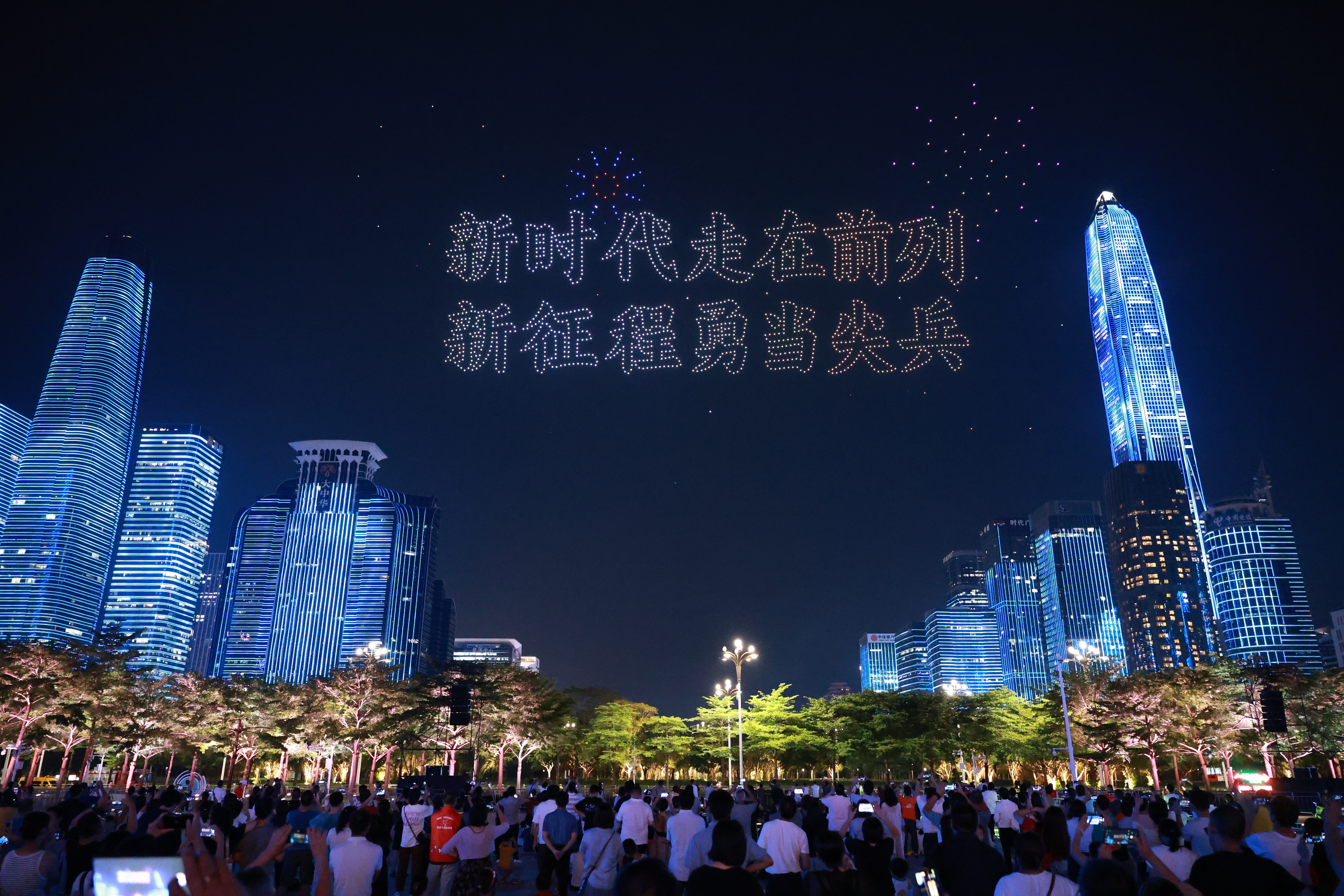 双会场以无人机组成的“新时代走在前列,新征程勇当尖兵”字样圆满收官。站在新的历史节点上,深圳将牢记嘱托、勇担使命,永葆“闯”的精神、“创”的劲头、“干”的作风,在深圳充分展现出中国式现代化建设的新进展新气象。