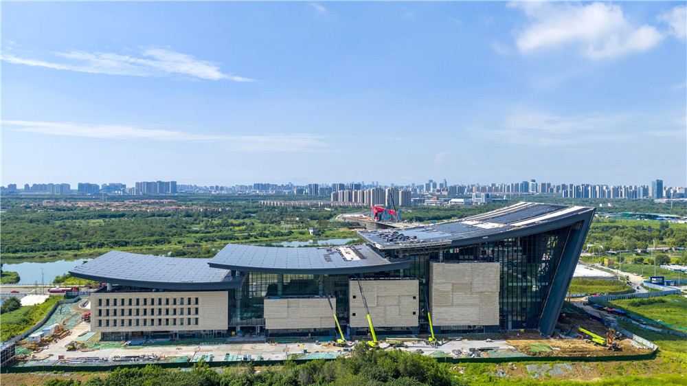 近日拍摄的合肥市博物馆。该馆总建筑面积约5.5万平方米,建筑设计以“庐州之帆”为理念,整体造型如一艘扬帆起航的钢铁帆船,象征着合肥人民勇往直前的进取精神。