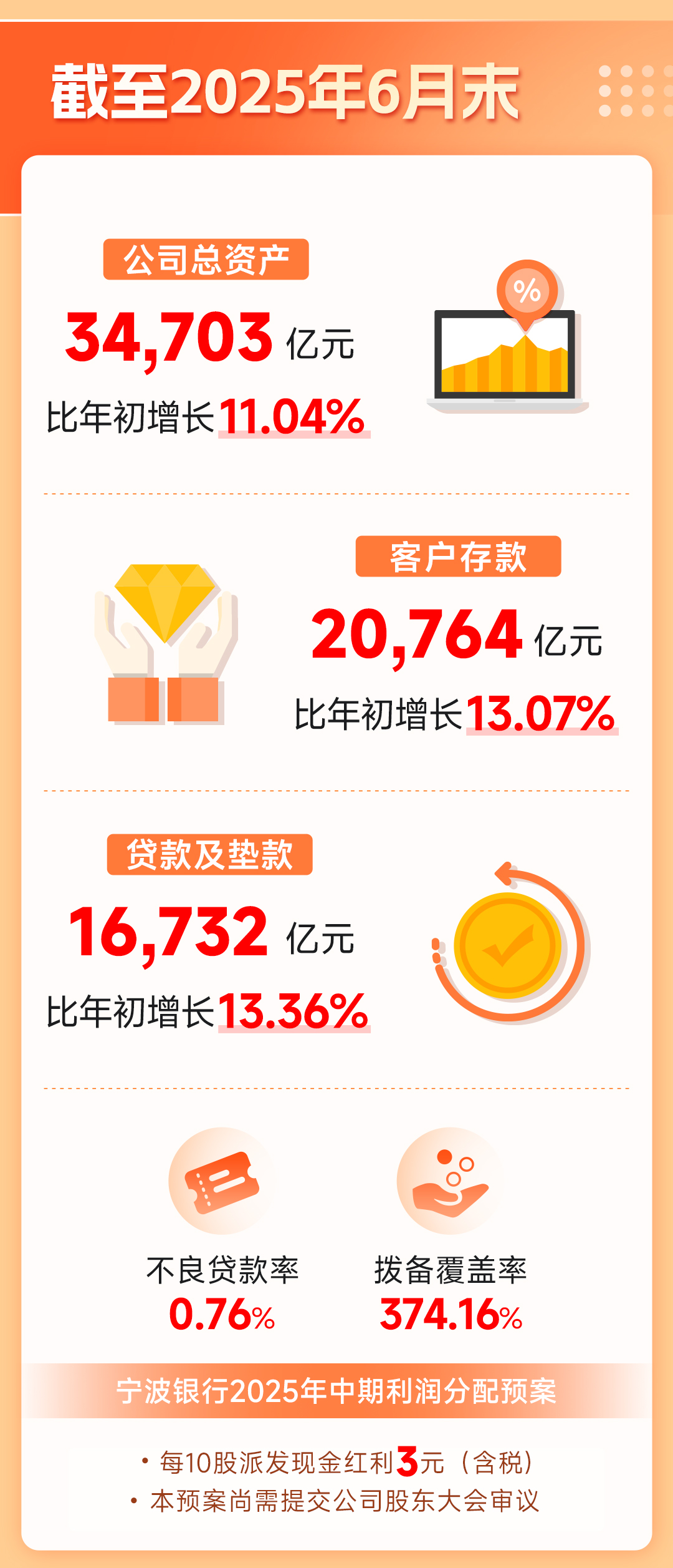 在践行上市公司责任、回报投资者方面,宁波银行董事会提出了每10股派发现金红利3元(含税)的中期分配预案,延续了该行一贯的高分红政策,让投资者共享发展成果。