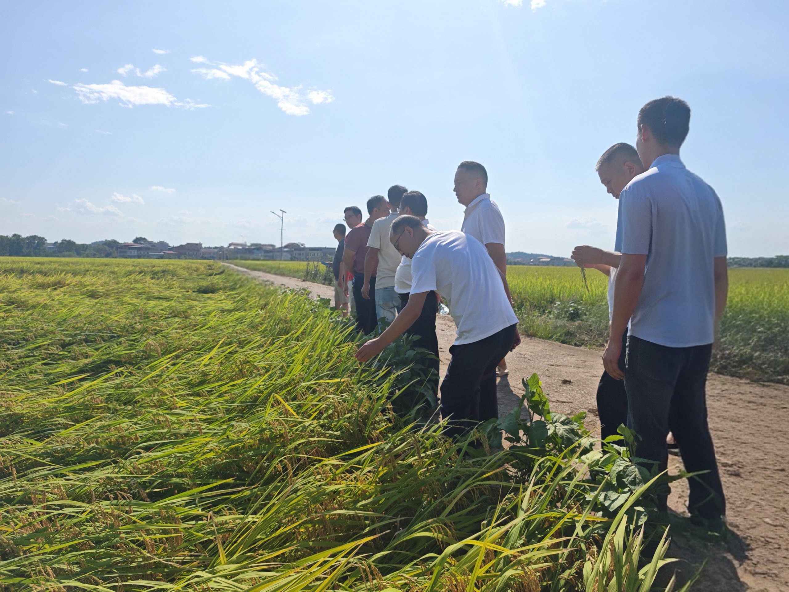 近日,湖南省衡南县部分乡镇遭遇强对流天气,狂风暴雨肆虐,个别村出现冰雹的极端天气,致使部分农田被淹,快熟的稻子成片倒伏,给当地种植农户造成不小损失。为了解灾情,9月3日下午4时,衡南县人民政府副县长杨宏辉带领县农业农村局和人保财险衡南支公司等单位负责人一行赴宝盖镇开展中稻受灾调研工作。