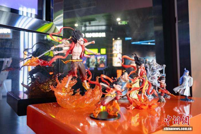 天府长岛数字文创园内,《哪吒》IP衍生品展览。