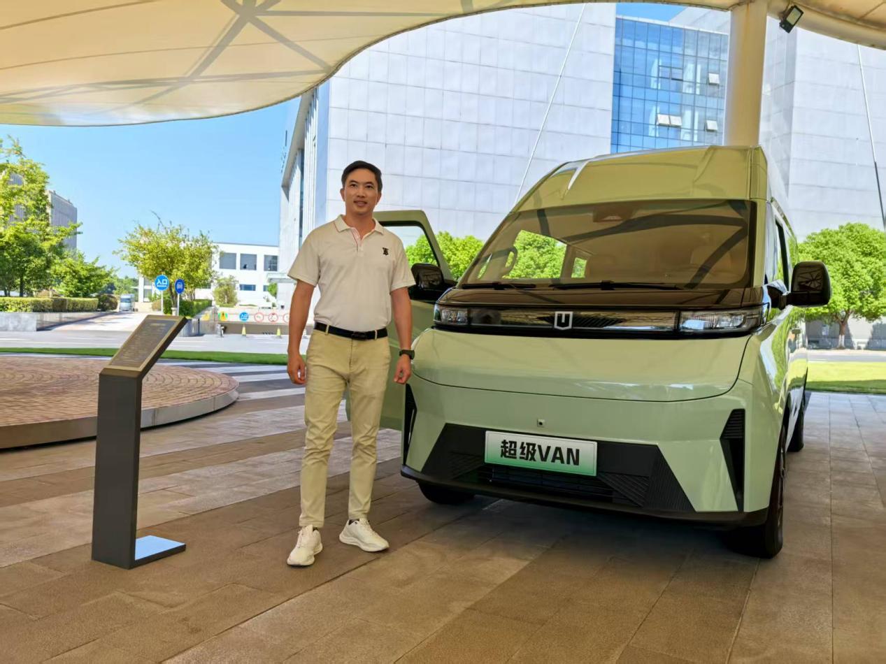 图释:AmerigroupInternationalLimited集团董事、副总裁黄伟坚在吉利远程醇氢动力研究院参观商用车超级WAN